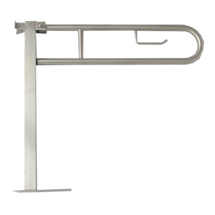 Gracias a su sistema abatible con giro vertical y pata de apoyo, la barra puede recogerse fácilmente cuando no se utiliza, optimizando el espacio del baño. Además, incorpora un soporte para papel higiénico, aportando un extra de comodidad y funcionalidad en el día a día.